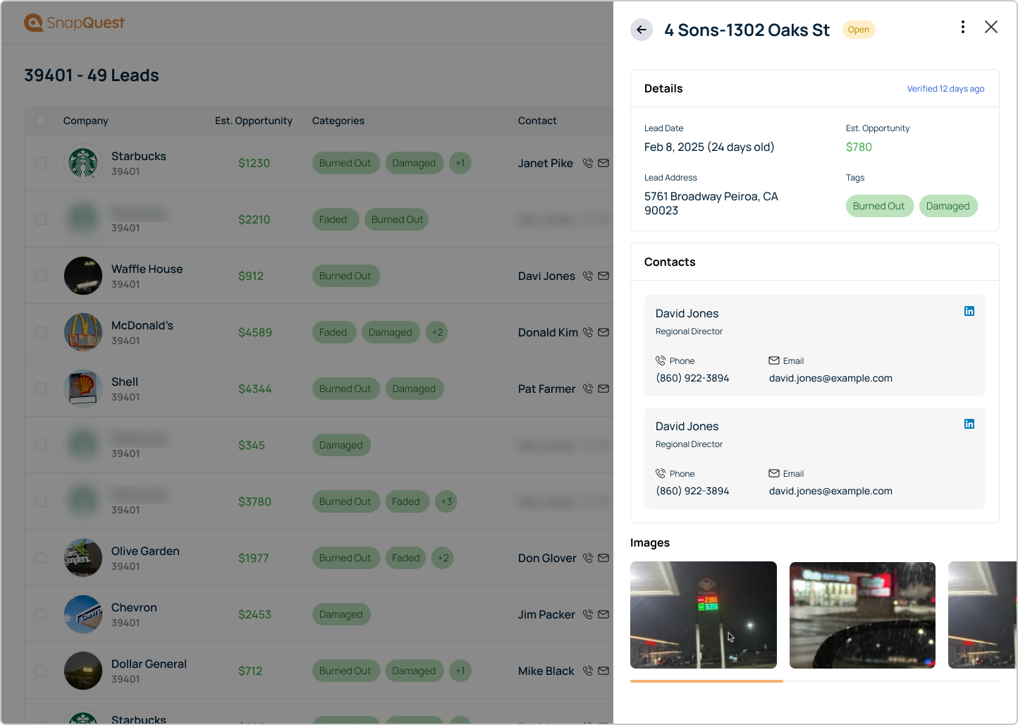 SnapQuest uses AI to enhance and validate reports, delivering more accurate leads and up-to-date contact information.