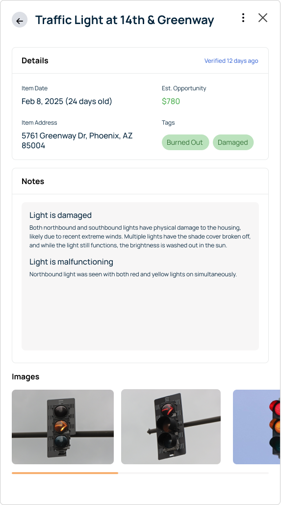 Receive high-resolution photos, GPS tags, and condition details — everything needed for accurate work orders, compliance reporting, and transparent accountability.